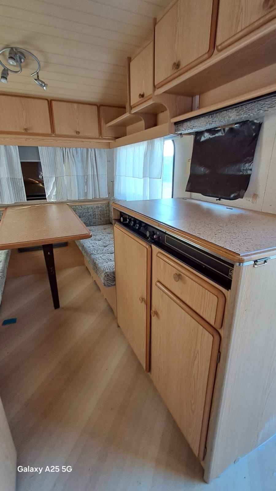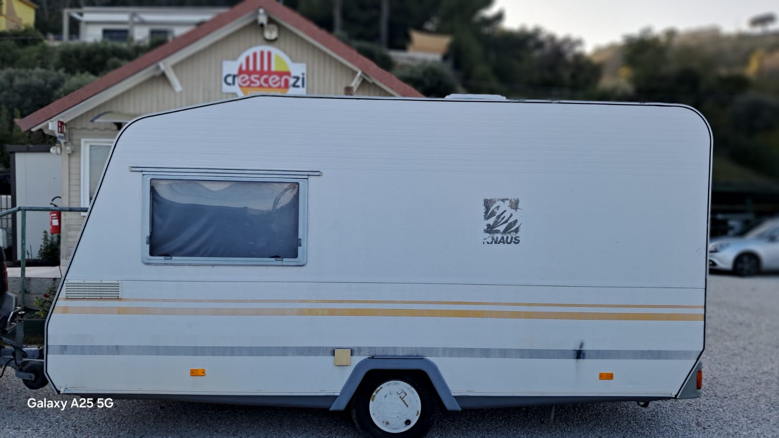 Caravan usata in buono stato con lamiera esterna bianca buccia d'arancia .